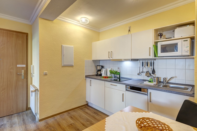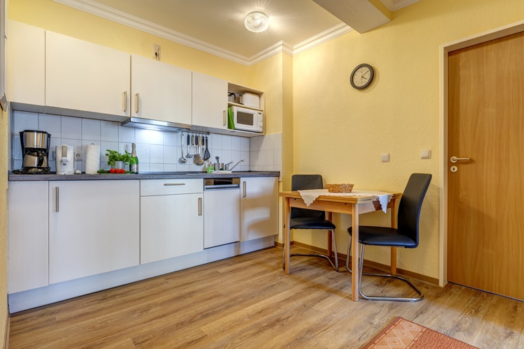 2-Plattenkochfeld, Geschirrspüler, Kühlschrank mit Gefrierfach, Mikrowelle, Toaster, Kaffeemaschine, Wasserkocher, Küchengeschirr, Essplatz |
